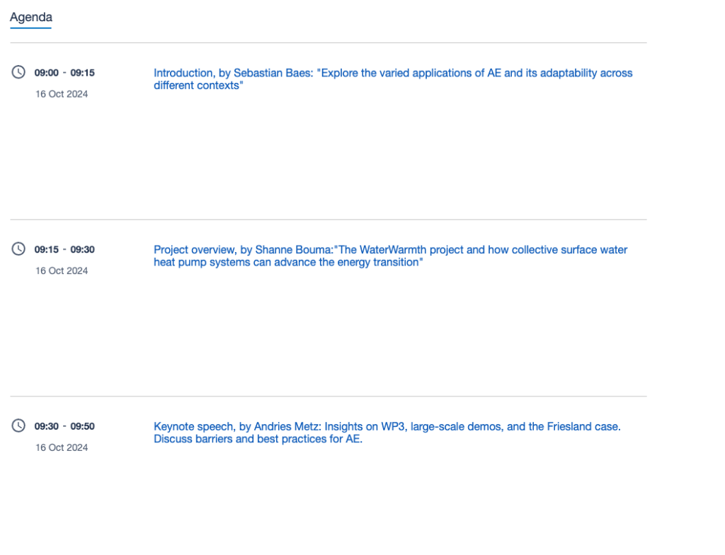 - Introduction to Aquathermal Energy, by Sebastian Baes: “Explore the varied applications of AE and its adaptability across different contexts”.