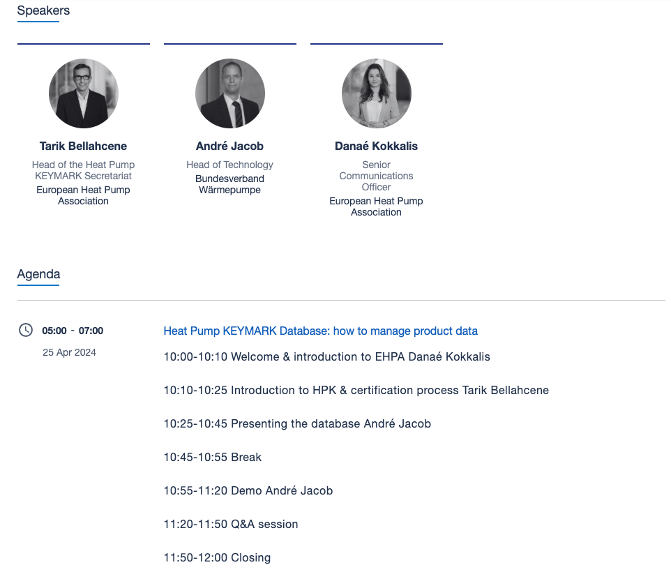 In this session, the Heat Pump KEYMARK Secretariat will focus on the product database. Join us to learn how to navigate and make the most of the various available resources.