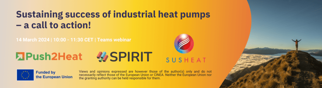 This online event is organized in the framework of SPIRIT, PUSH2HEAT and SUSHEAT, three EU projects funded under the Horizon Europe Program, which are working to foster the uptake of high-temperature heat pumps in the industrial sector.