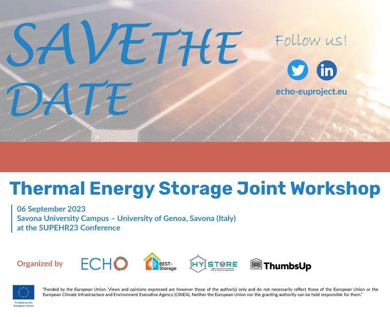 Four projects funded under the Horizon Europe call “Thermal Energy Storage Solutions” have joined forces to organize an event with the aim of sharing lessons learnt from each project and collecting feedbacks from experts and researchers to enhance the quality and functionalities of Thermal Energy Storage solutions they are going to develop.